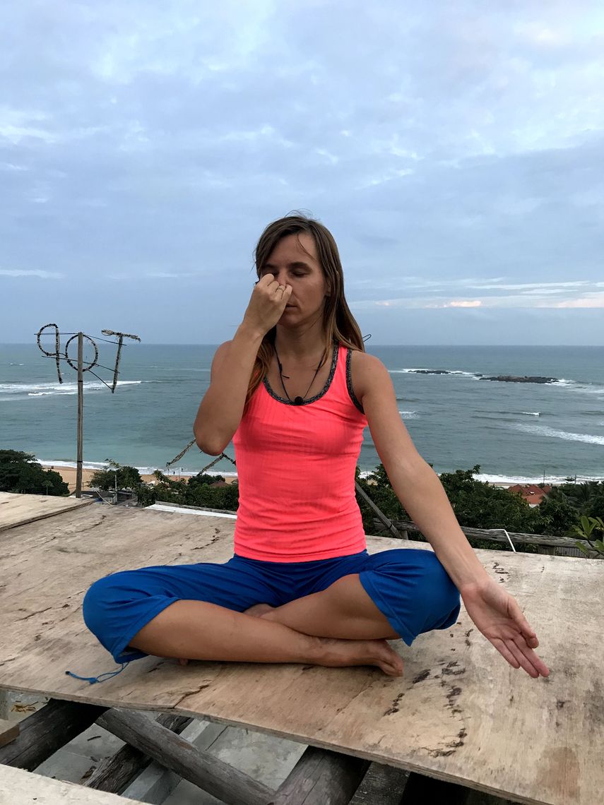 It is difficult to overestimate the importance of breath, because it all starts and ends with the breath. Moreover, yogis believed that our life is measured by breath, and we are destined to make a certain number of inhales and exhales during our life span, whereas the right and conscious breathing enlarges us with the vital energy (prana) and that breath does not count. The main difference between Pranayama and usual breath is the awareness of the breath and the correct ratios. Pranayama (inhale, breath retention and exhale) as breathing technique comes before Pratyahara (sensory withdrawal) and Dharana (one pointed concentration), while being the last part of the Outer or External Yoga branch. Usually pranayama is performed in tandem with siting asanas that give steadiness. Ιf Pranayama is not practiced well enough it may impede the practitioner to dive into deeper meditative states, not only because it is difficult to attain the inner concentration, but because of imbalanced and unpurified nadis – energy channels in the subtle body through which the vital energy or prana flows. Yoga Darshana Upanishad states that impurities in the nadis are caused by low pranic energies, which, in turn, are the effects of mental cravings and exhausting or wrong lifestyle, where tamas or rajas prevail. Nadi Sodhana purifies our nadis by the process of alternate nostril breathing. In Sanskrit and Sinhala languages, the word ‘sodhanam’ means purification.